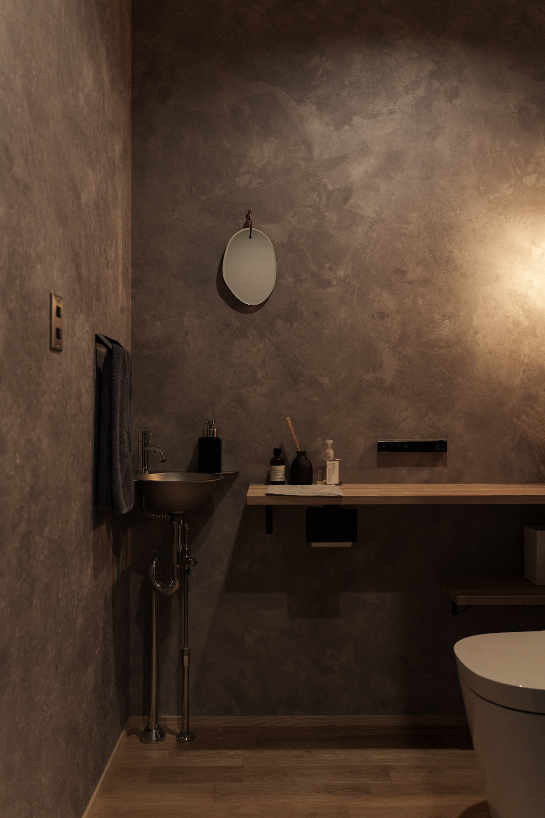 タイルと木の組み合わせが、ほどよい温かさと質感を演出します。